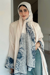 Aye'nin Tercihi Navy Monogram Floş Şal Krem