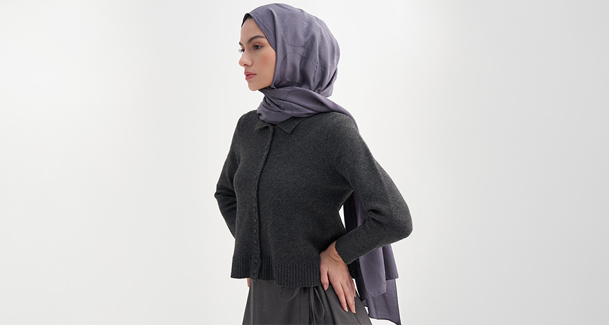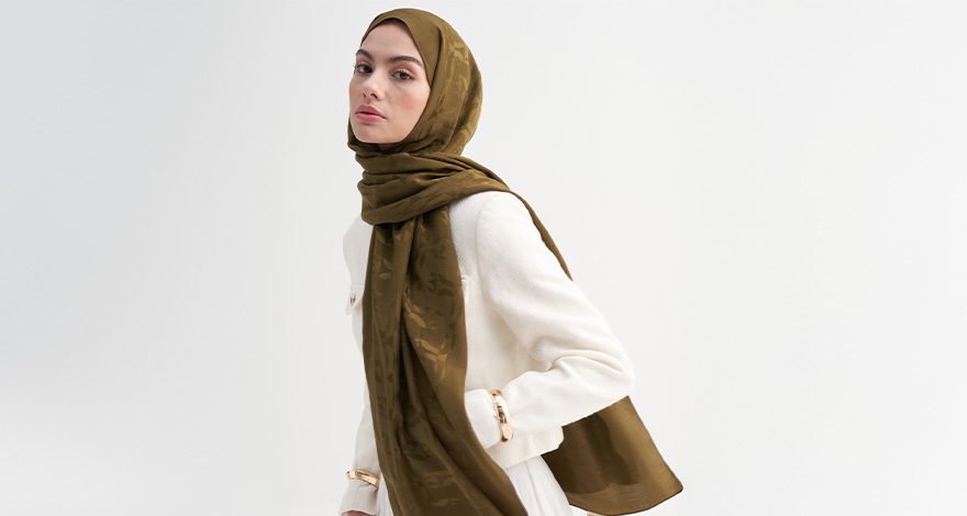 Modest giyimin temel taşlarından olan abayalar, Rina Floş Jakar serisi ile kusursuz bir uyum yakalıyor. Özellikle siyah bir abaya üzerine tercih edilen çikolata kahve monogram şal, kumaş kontrastı yaratarak siluetinize lüks bir derinlik katar.