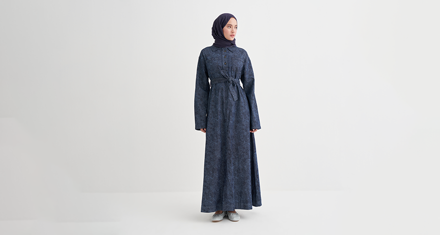 Koleksiyonun en iddialı parçalarından biri olan Liz Desenli Uzun Denim Elbise koyu mavi tonuyla güçlü bir duruş sergiliyor. Denim kumaşın dayanıklılığıyla feminen çizgileri buluşturan bu model, hem sade hem de dikkat çekici bir duruş sunuyor. Bel hattını vurgulayan tasarımı sayesinde vücut formunu zarifçe ortaya çıkarıyor.