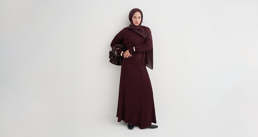 Bu sezonun öne çıkan dokularından biri de triko. Fitilli Triko Etekli Takım Mürdüm, hem sıcak hem de sofistike bir görünüm arayan kadınlar için ideal. Fitilli dokusu sayesinde vücuda uyum sağlar ve hareket özgürlüğü sunar. Mürdüm tonu ise sezona derinlik katar. Takımın hem ofis hem de günlük kombinlerde kullanılabilmesi, Carell’in çok yönlü stil anlayışını yansıtıyor.