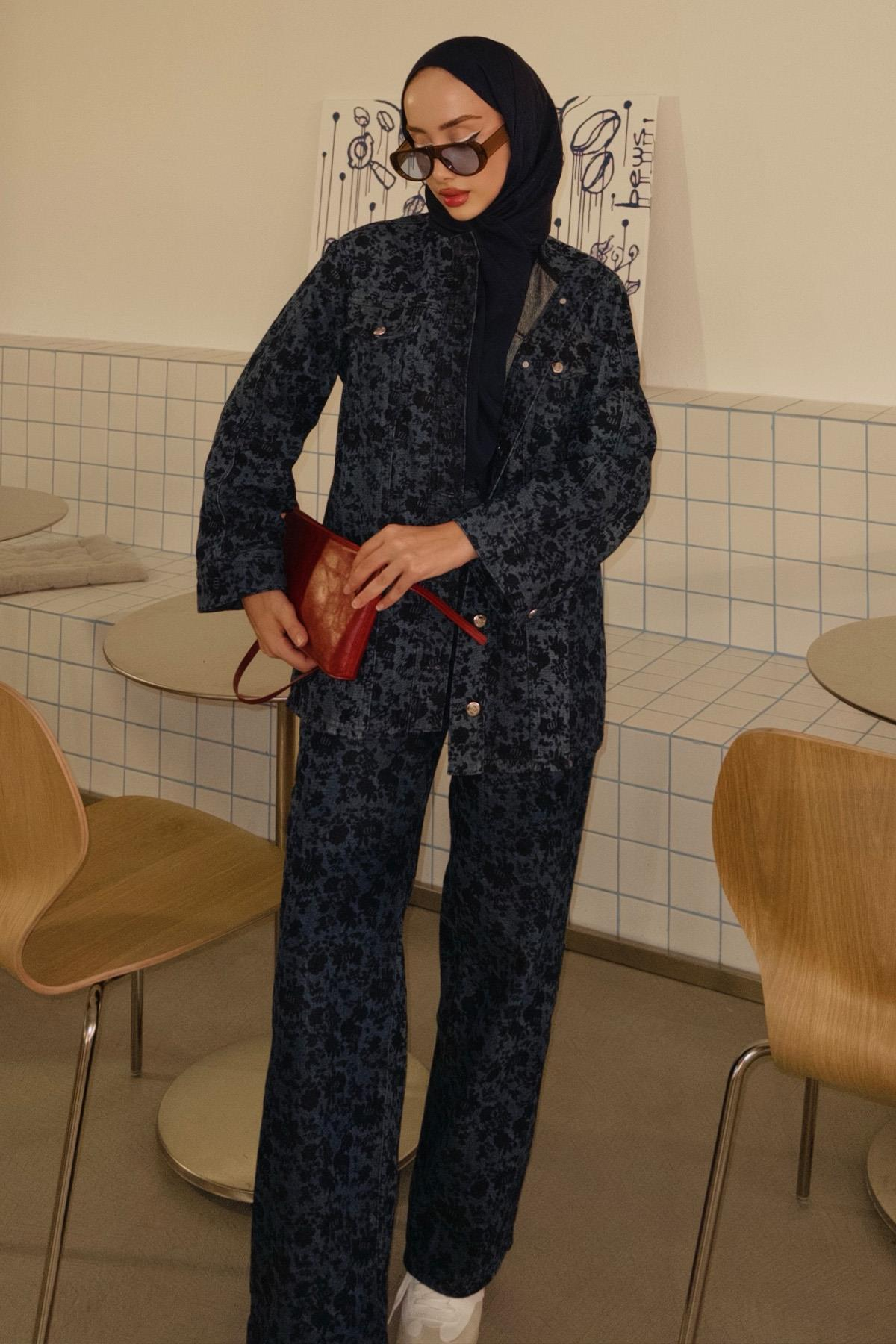 Özgün floral monogram deseniyle fark yaratan bu jean pantolon, klasik denim şıklığını modern bir dokunuşla yeniden yorumluyor. 1. sınıf denim kumaşı sayesinde gün boyu konfor sunarken, pantolon uzunluğu ile zarif ve dengeli bir siluet oluşturur.