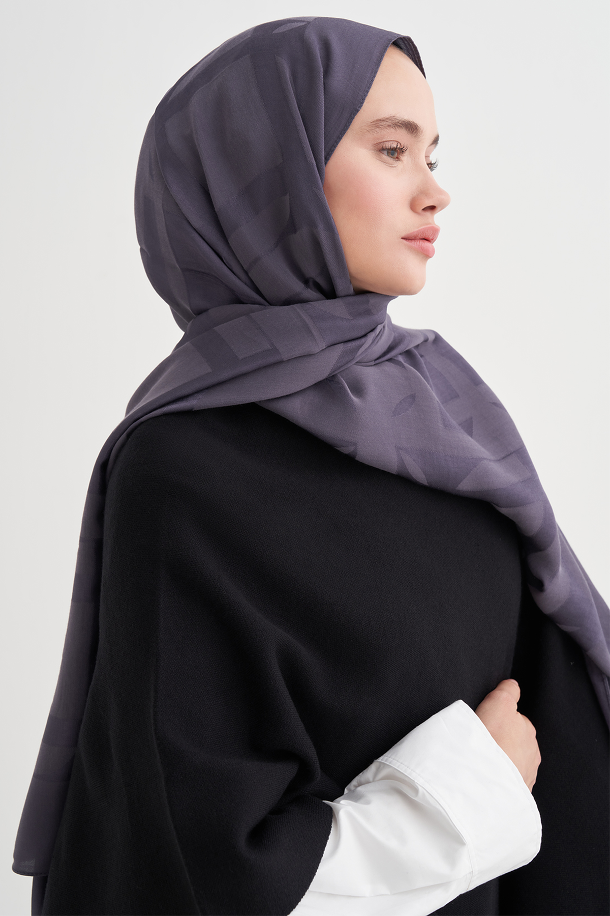 Geometrik Desen Liora Pamuk Şal Füme
