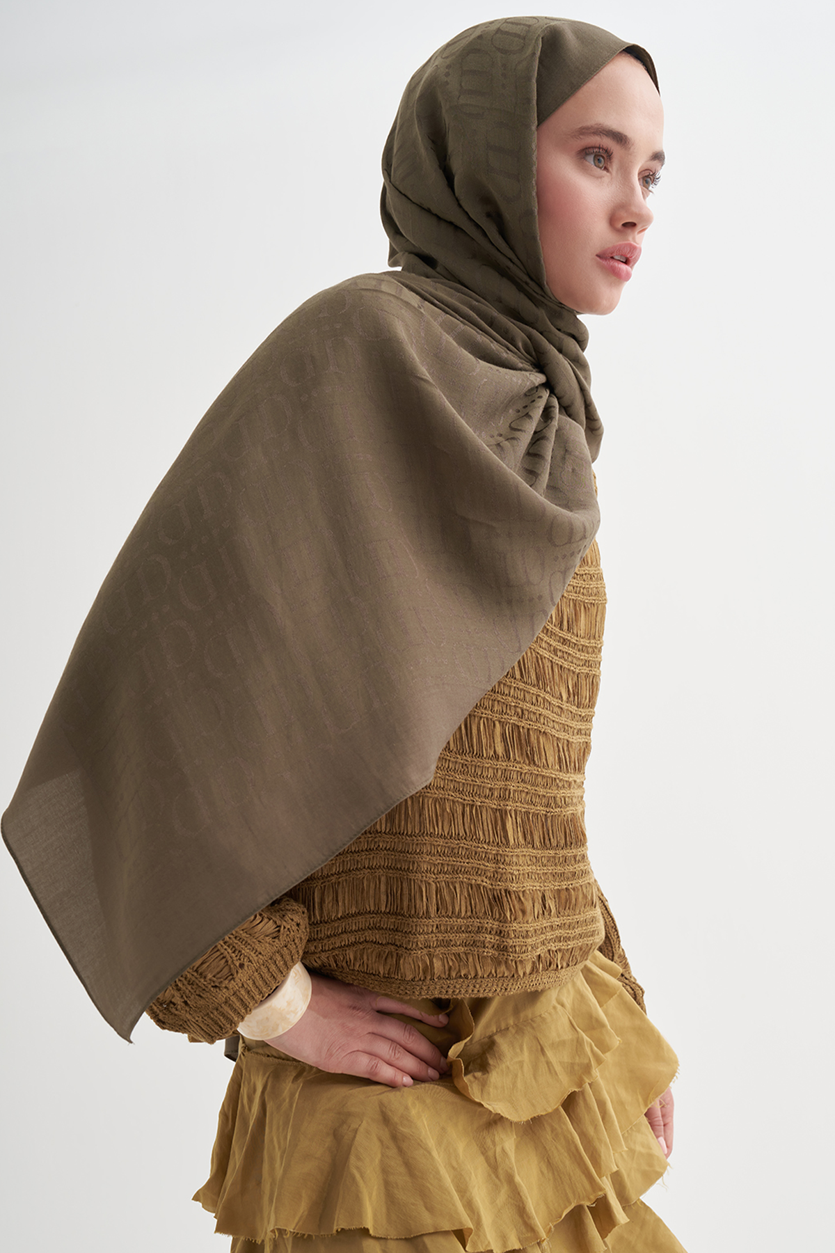 Luxe Desen Liora Pamuk Şal Zeytin Yeşili