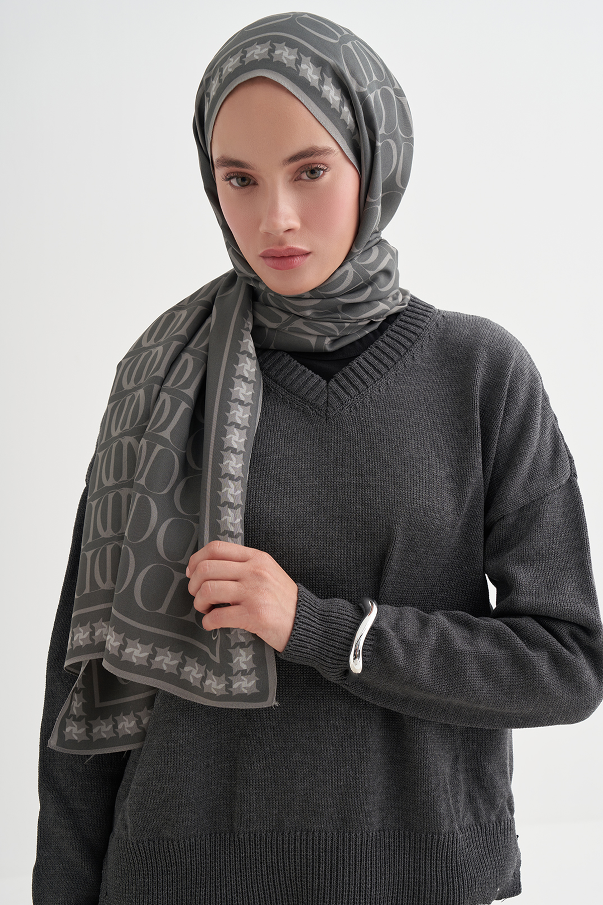 Vei Monogram Floş Şal Gri